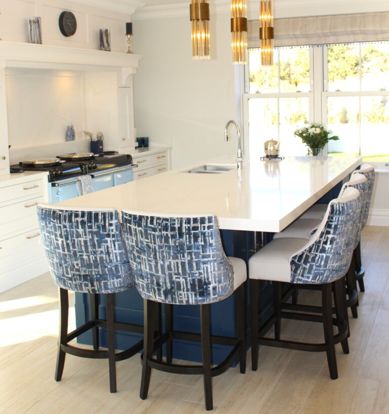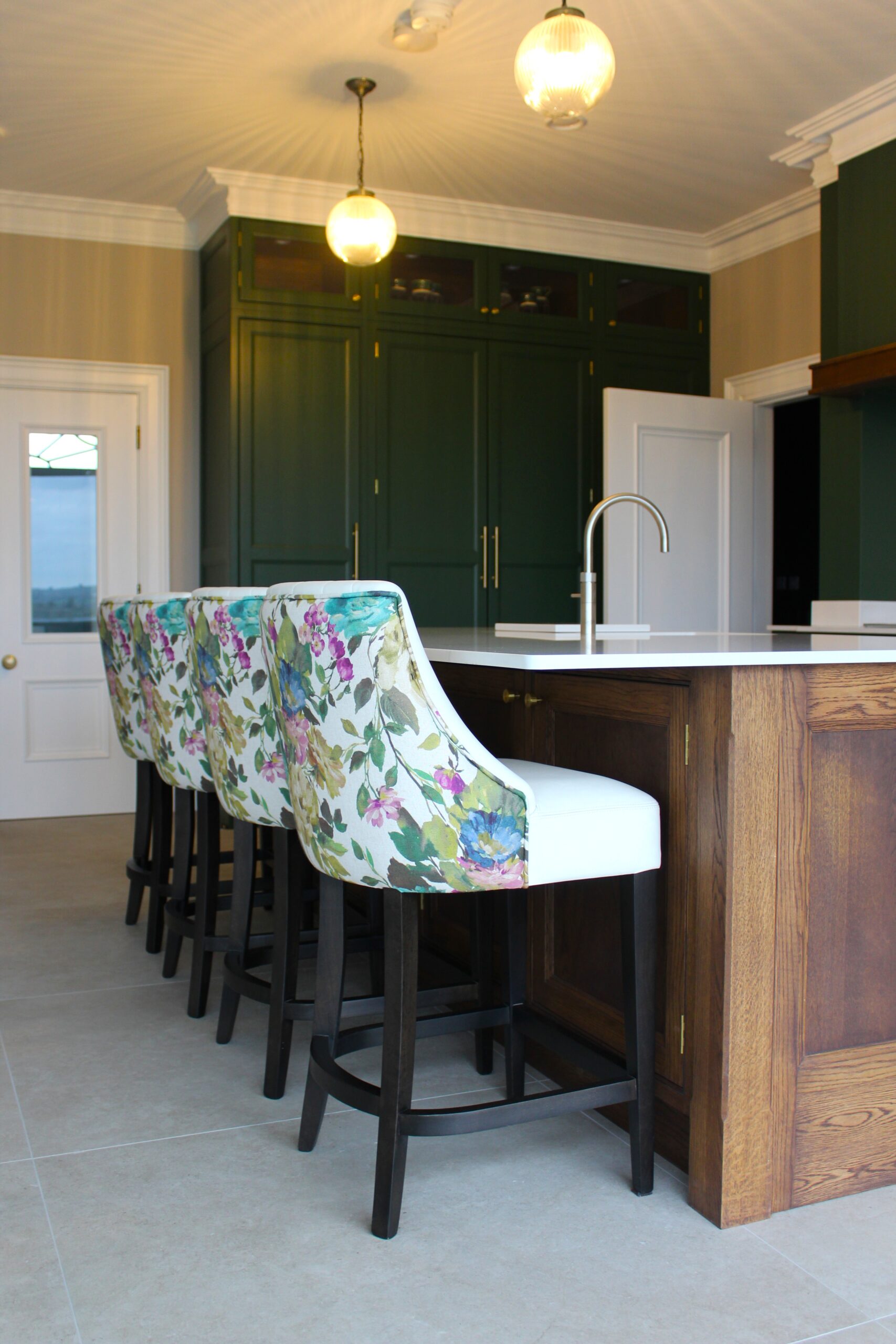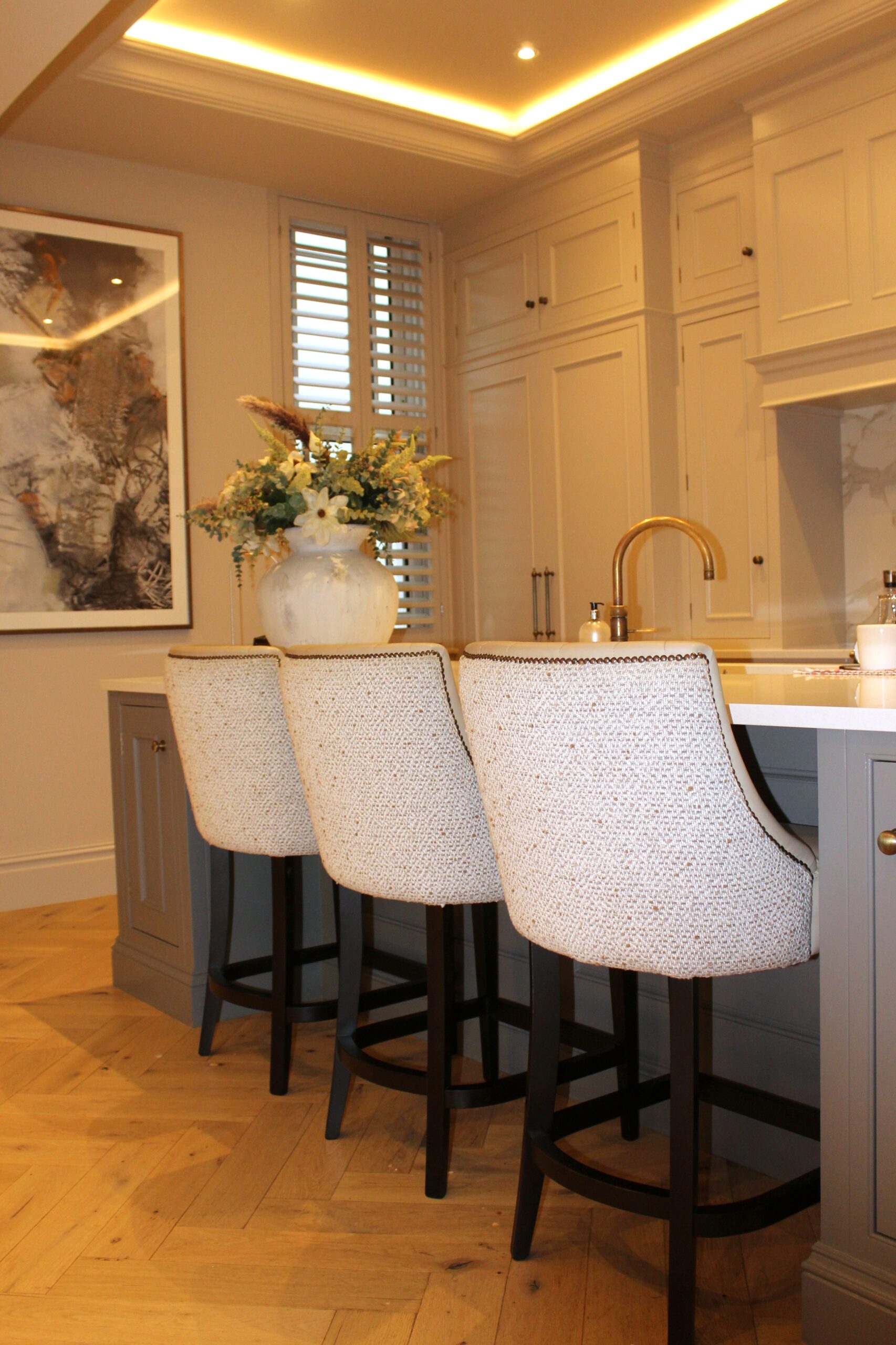 The ‘Stella’ features a subtle curved back with the option of a buttoned or fluted finish. The legs are also available in a choice of wood stains or solid oak.
